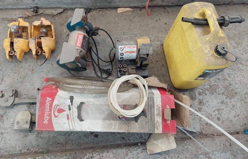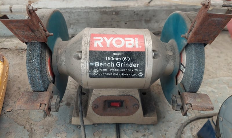 Assorted items including, Ryobi HBG6E 150mm (6 inch) Bench Grinder, Darex drill sharpener, Hitch Helmet anti-theft trailer coupling locks and more...Sold as a lot.Note: signs of wear