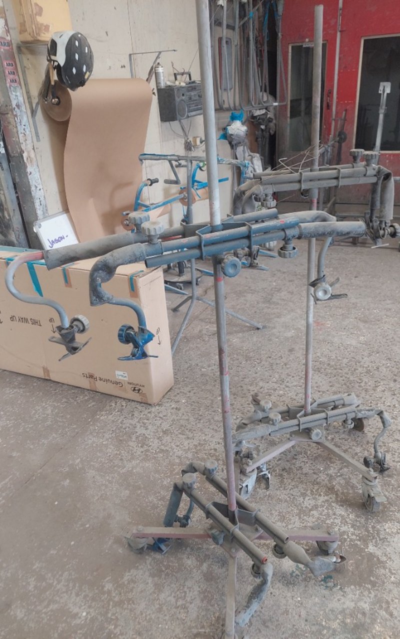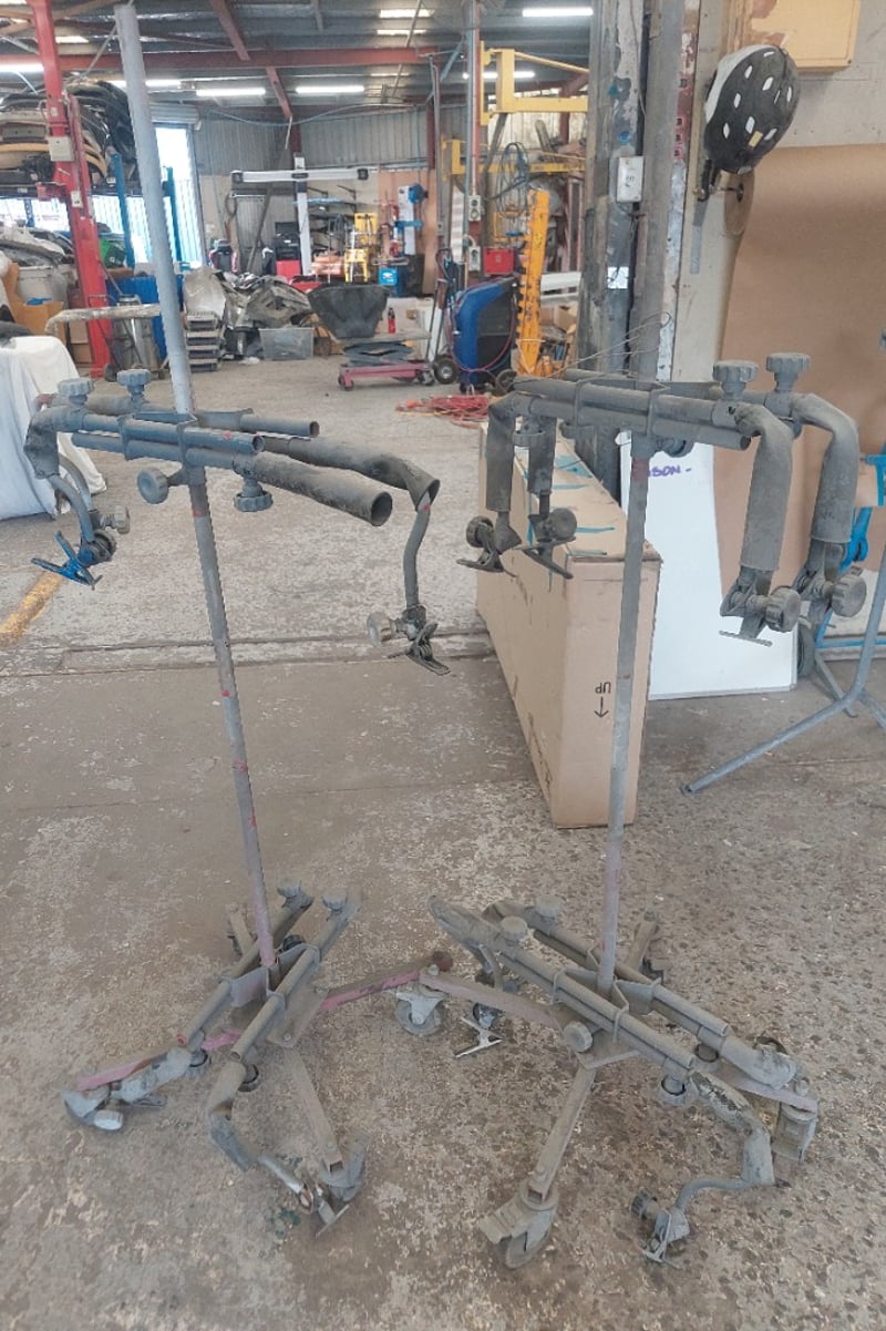 Assorted Portable work stand, commonly used for supporting vehicle panels like fenders or doors during repair and painting.