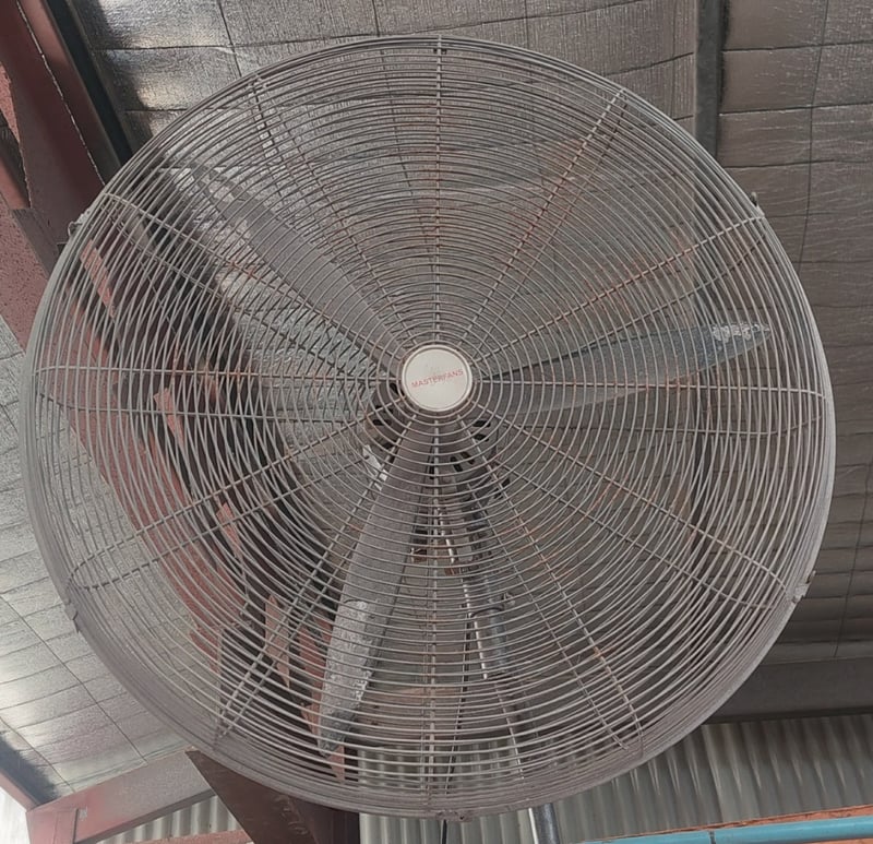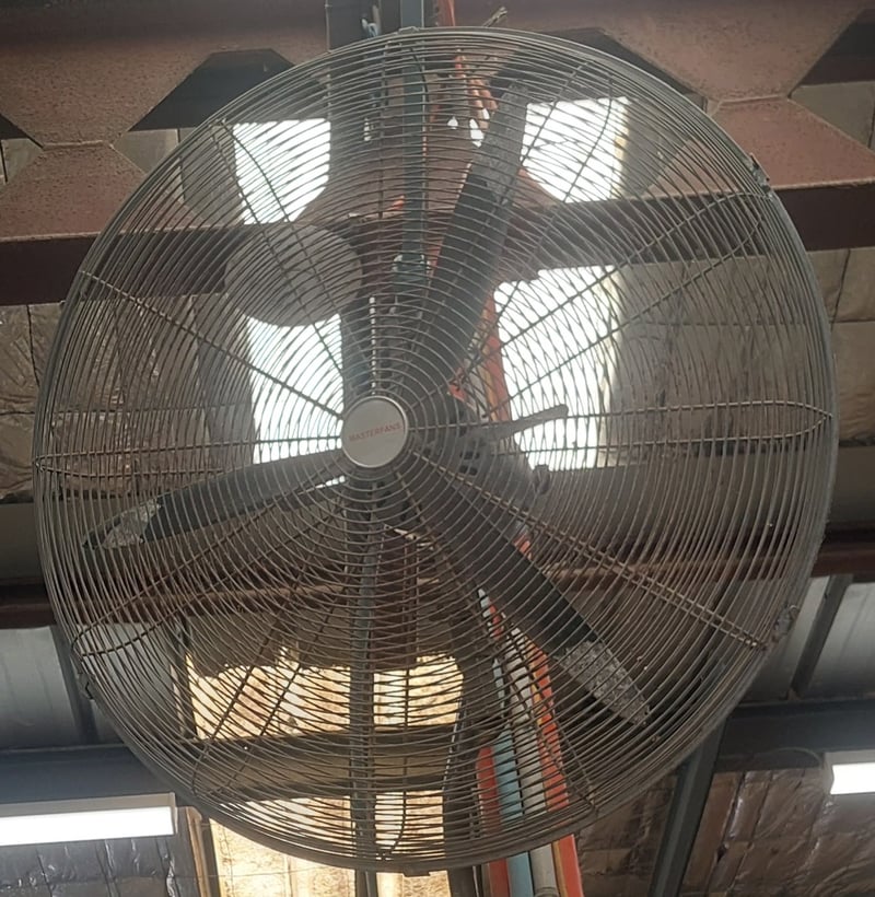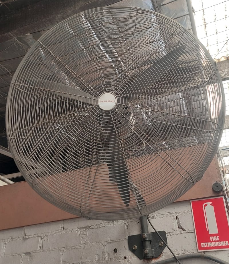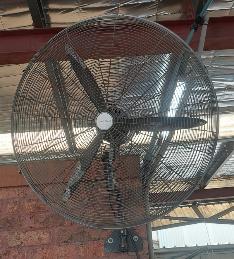 Industrial wall-mounted fan, Masterfan brand. Qty: 4. Bid per each. Notes: items untested and signs of wear.