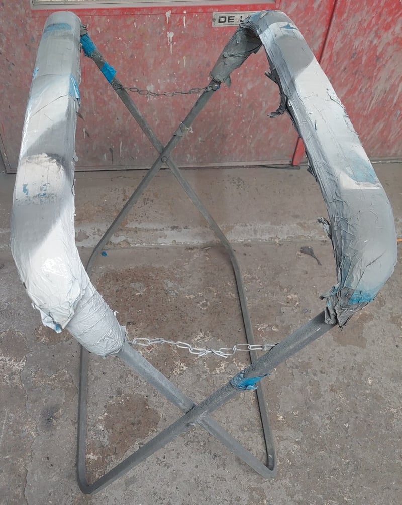 Assorted Portable work stand, commonly used for supporting vehicle panels like fenders or doors during repair and painting.