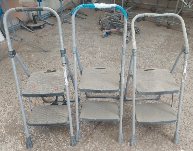 Gorilla Portable 2-step folding ladder or step stool.Qty: 3Sold as lot.Notes: items untested and signs of wear.