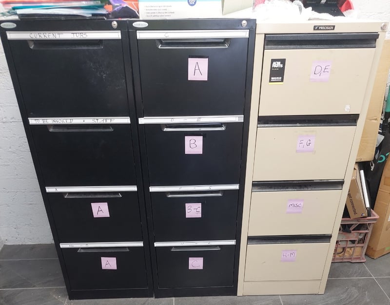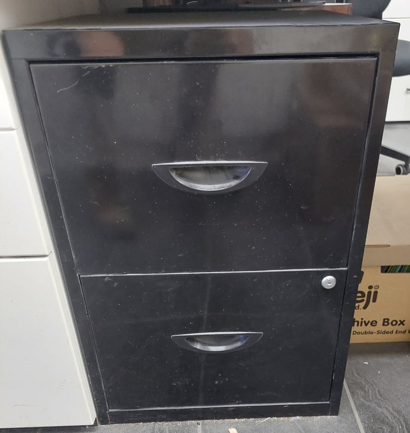 Assorted lot of office Furniture includes, Steel cabinets, Hisense TV, mini bar fridge, Rexel paper shredder and more...