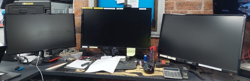 Assorted lot of computer equipment includes, computer monitors, computer tower and scanner.