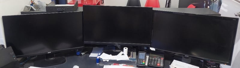 Assorted lot of computer equipment includes, computer monitors, computer tower and scanner.