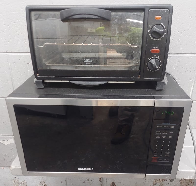 Assorted lot of kitchen appliances includes, Sunbeam mini bake and grill,Samsung microwave and LG freezer / refrigerator.