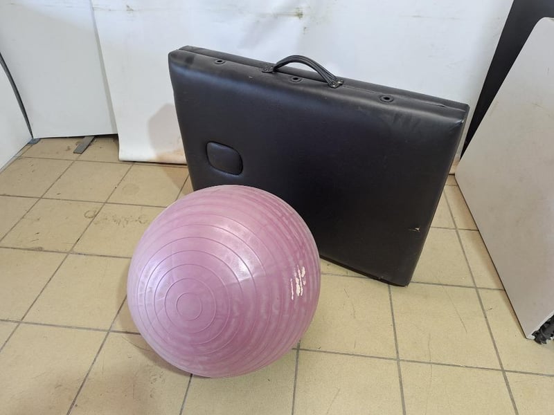Message Bed Black Finish & Yoga Ball Purple FinishDimensions Bed H:77cm W:192cm D:68cmSOLD AS LOT