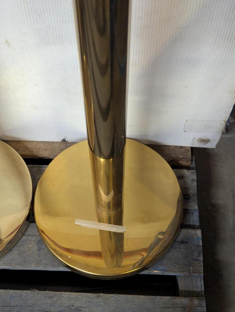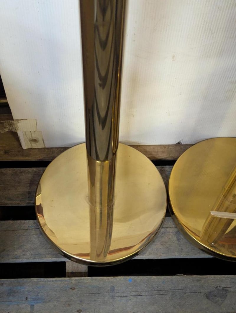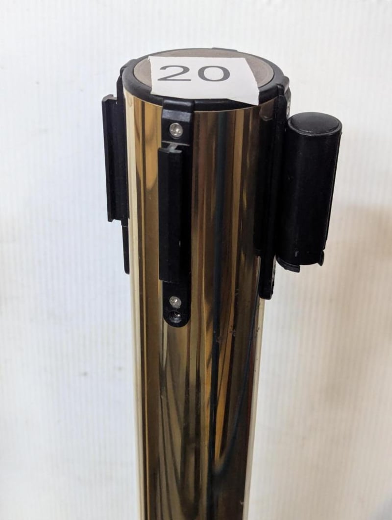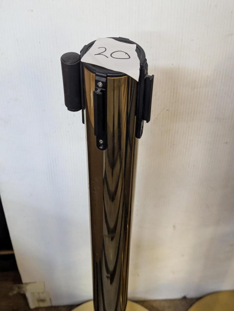 2 x Gold Bollards with Black Retractable Strap