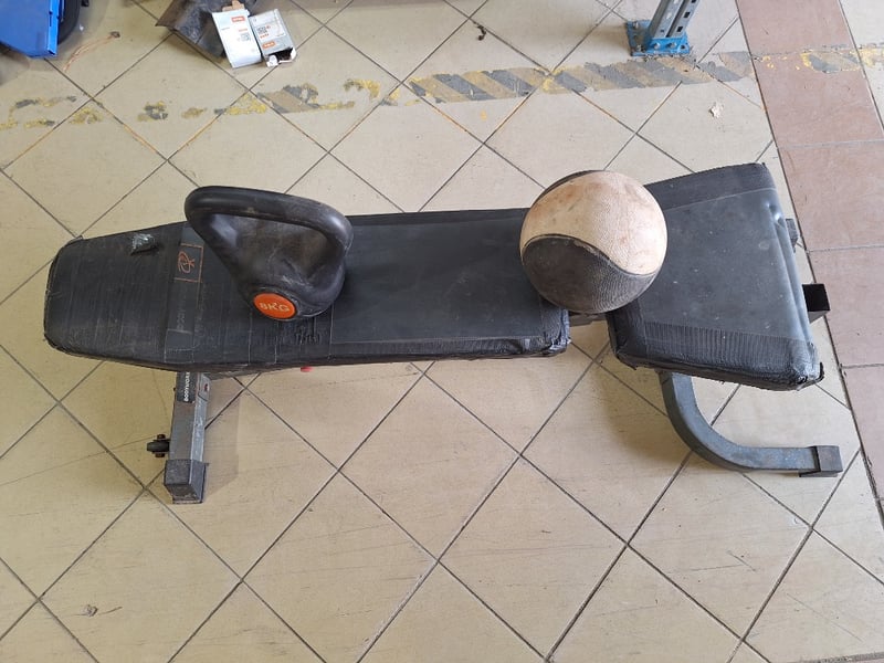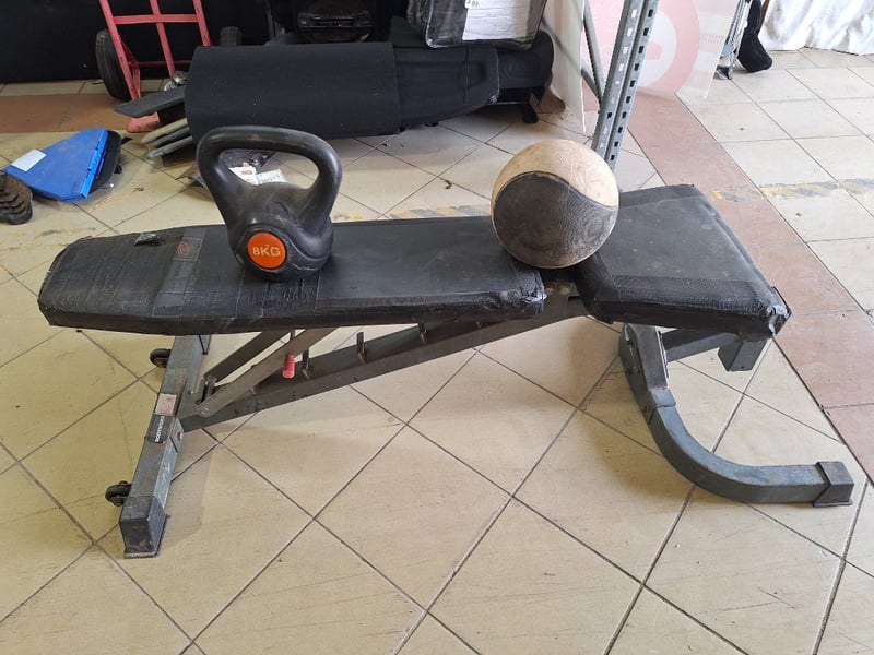 Adjustable Weight Bench, 8KG Kettelbell, Weighted BallSOLD AS LOT