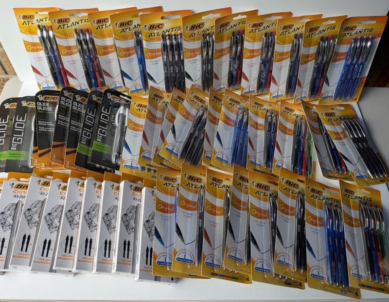Bulk lot of Bic Atlantis, Glide & Cristal metal ballpoint pens, $336 approx value, qty of 44 packs (sold as lot)
