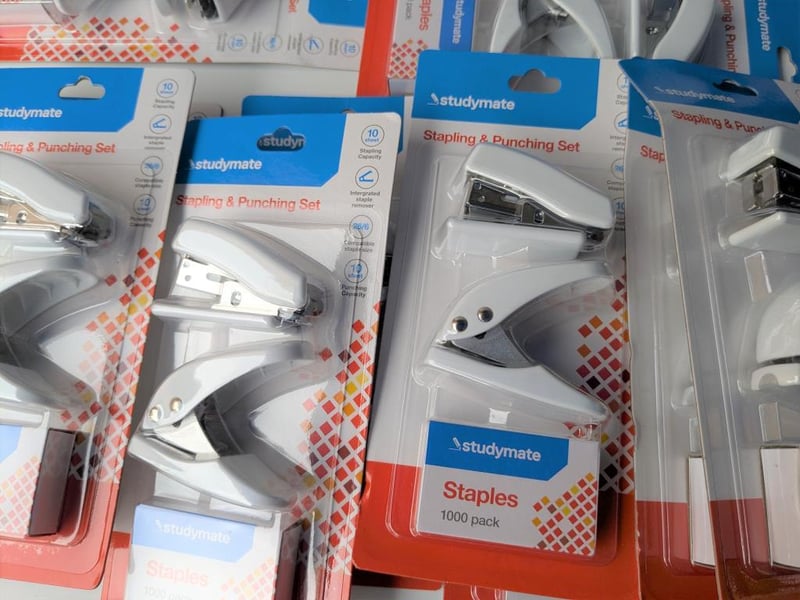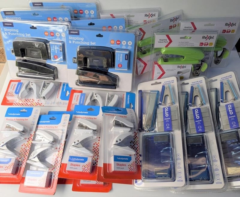 Bulk lot of stapler & punch sets, Rexel, Burrows & Studymate, $234 approx value, qty of approx 20 packs (sold as lot)