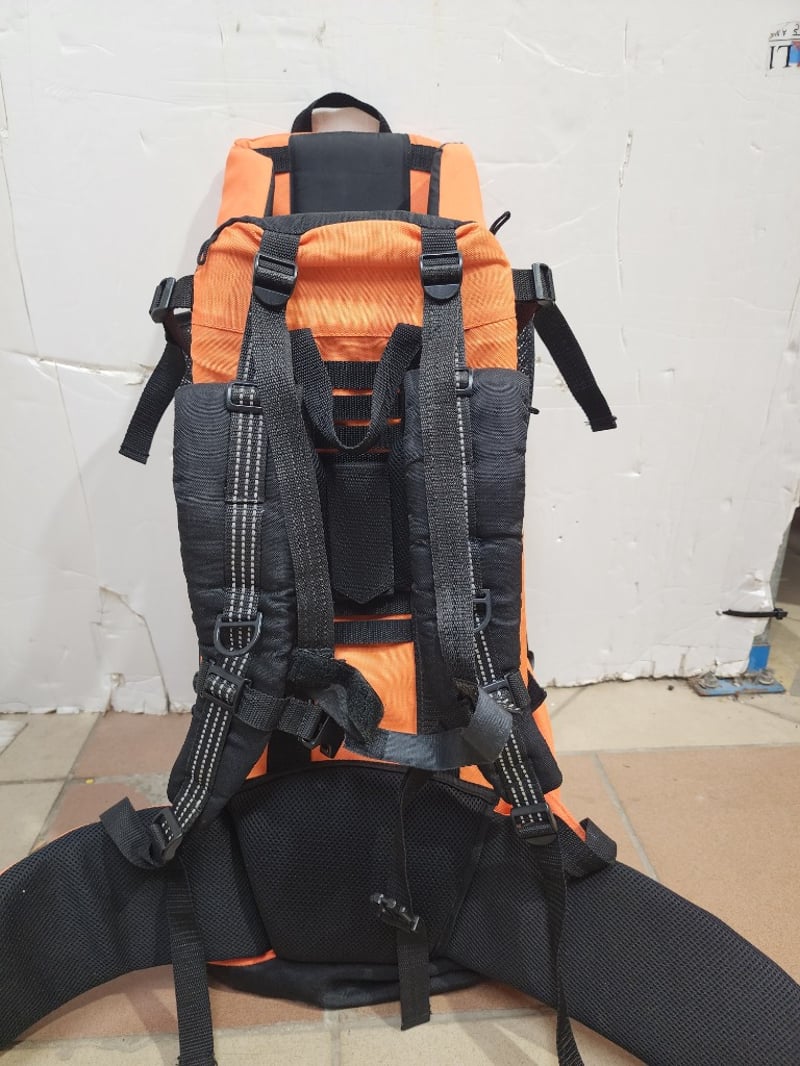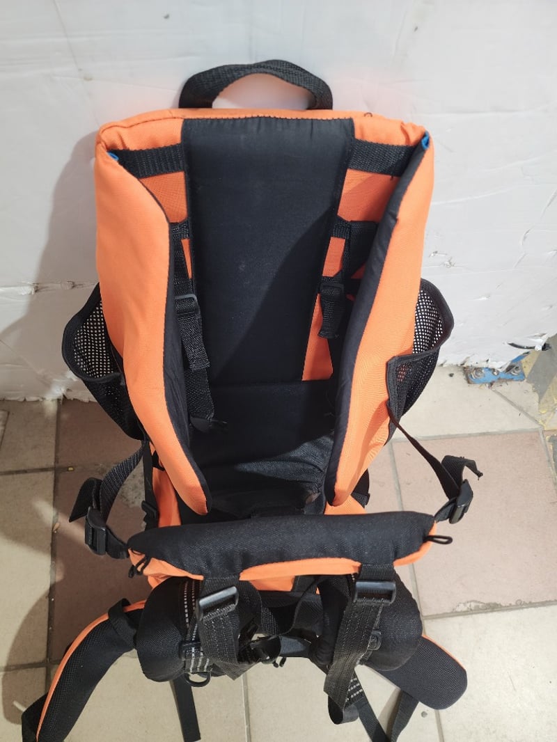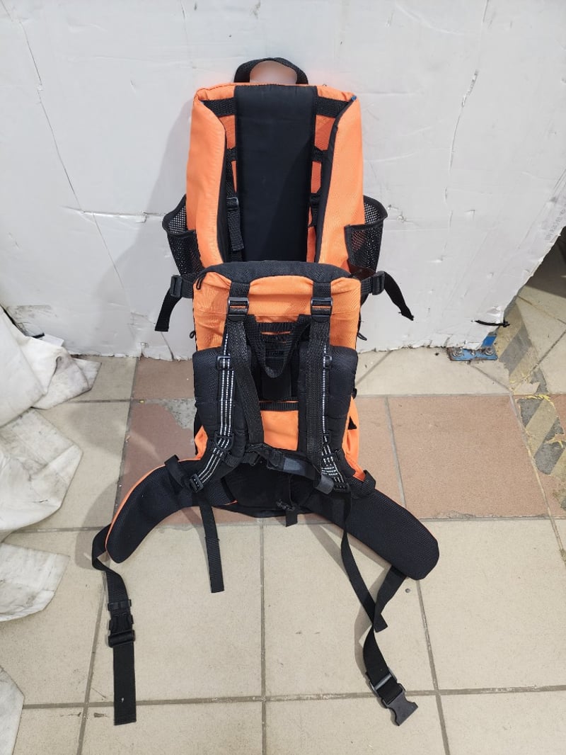 1 bright orange child /pet hiking backpack with padded straps and drink holder