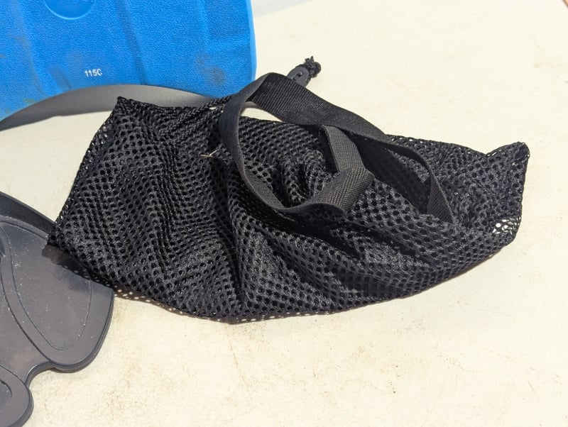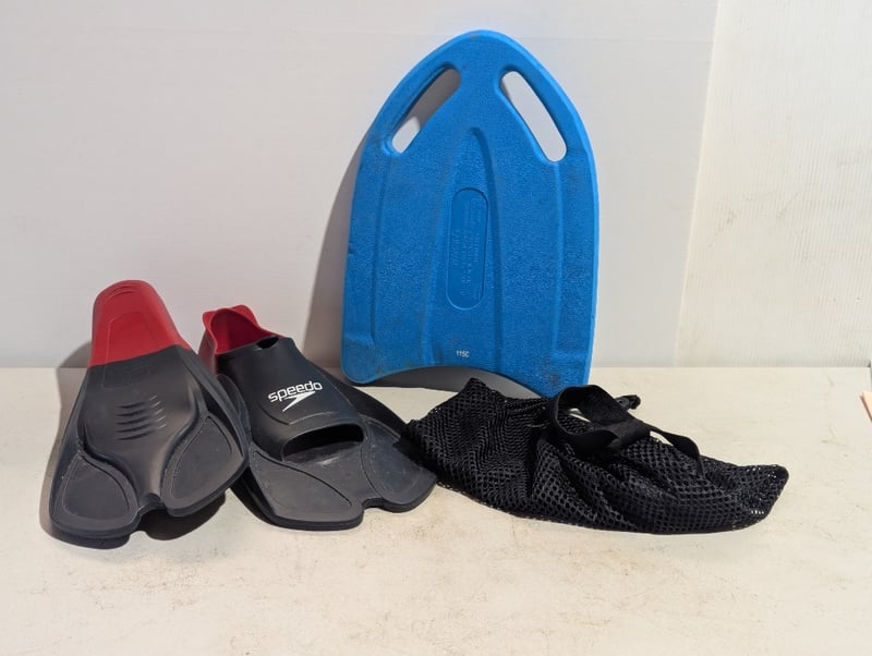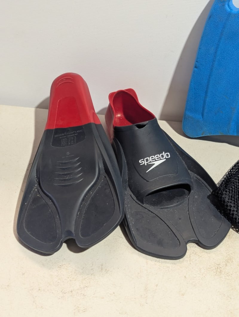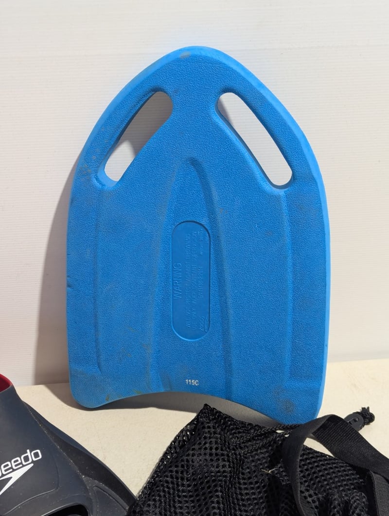 Swimming flippers and kickboard in drawstring bag, size Eur 47-48