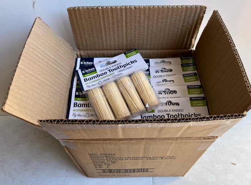 Carton 144 Toothpicks Set of 100 Double Ended, Bamboo (36x pack4) brand new SOLD AS BULK LOT