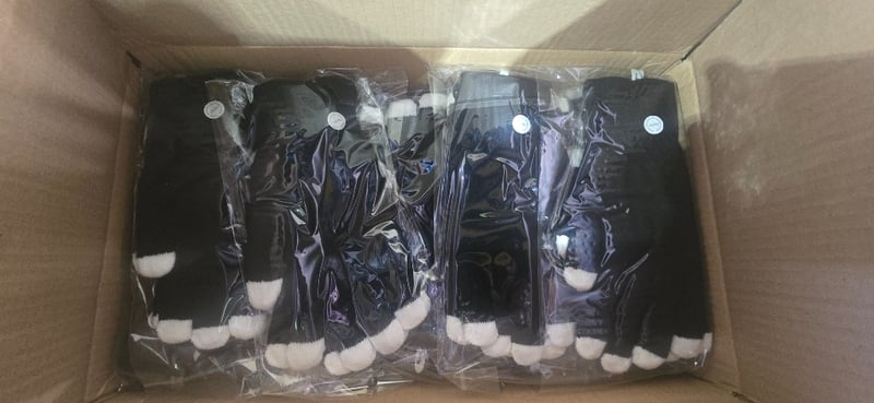 Kids gloves, roughly 200x LED- flashing black gloves with white fingertips that flash, multi coloured lights