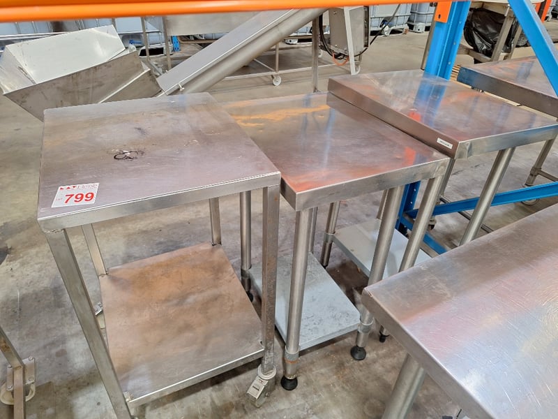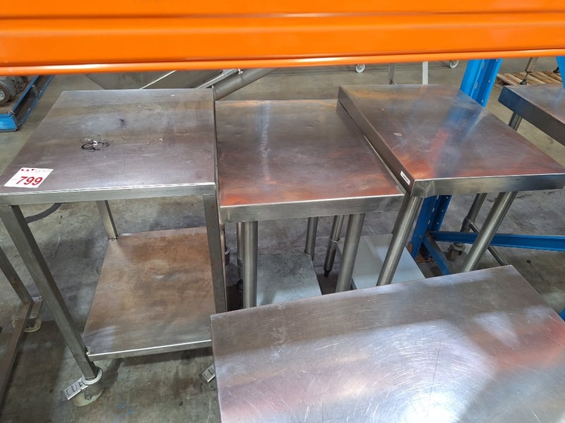 X3 Commercial Kitchen BenchesDimensions Approx H:900mm W:590mm D:490mmSOLD AS LOTNOTE: INSPECTIONS HIGHLY RECOMMENDED, BUYER TO PROVIDE OWN LABOUR AND TOOLS FOR SAFE REMOVAL OF ASSET
