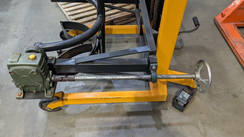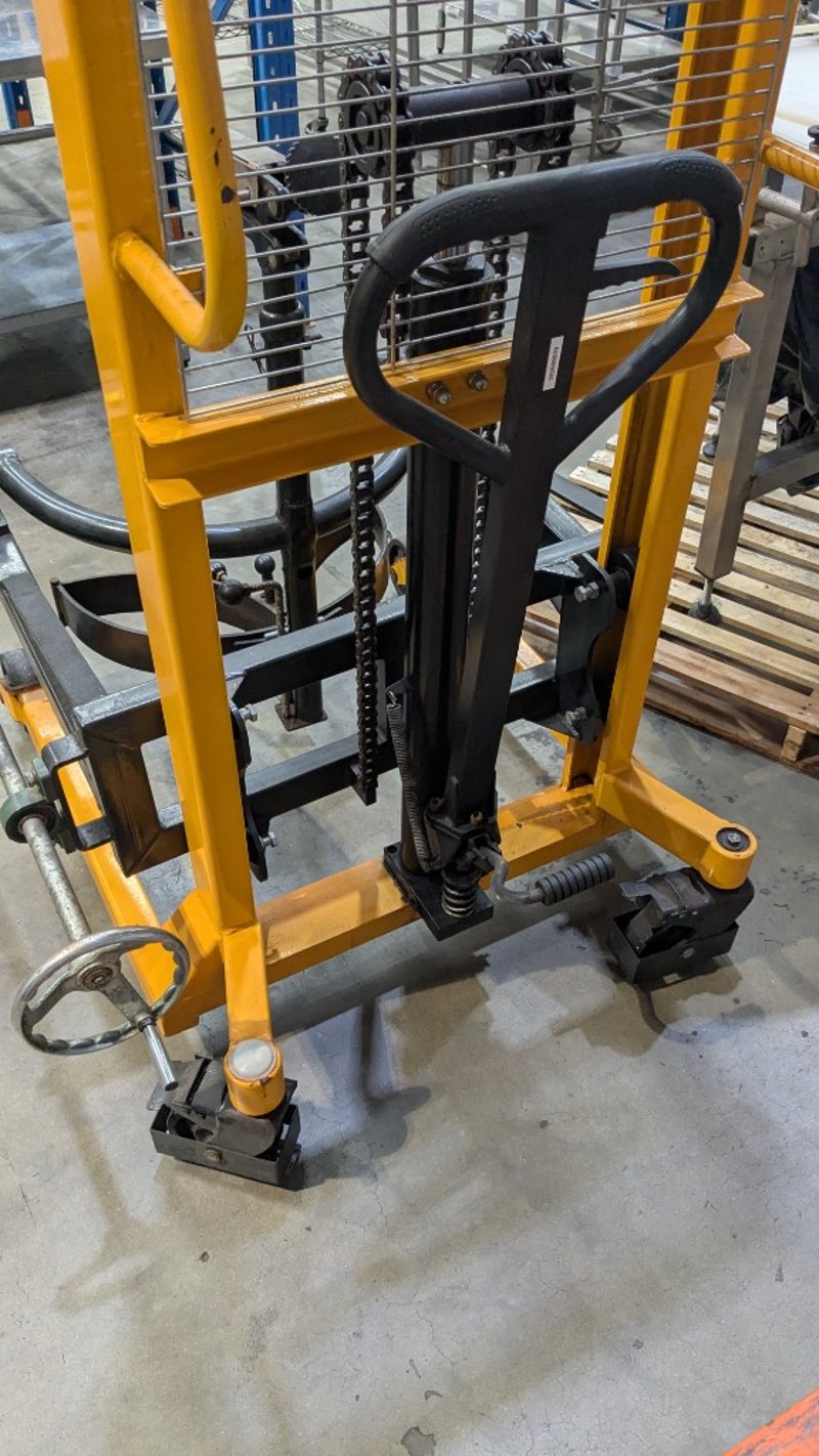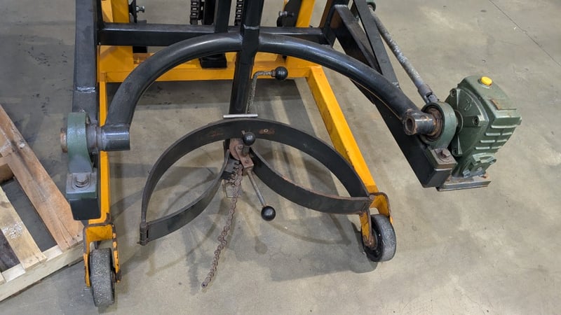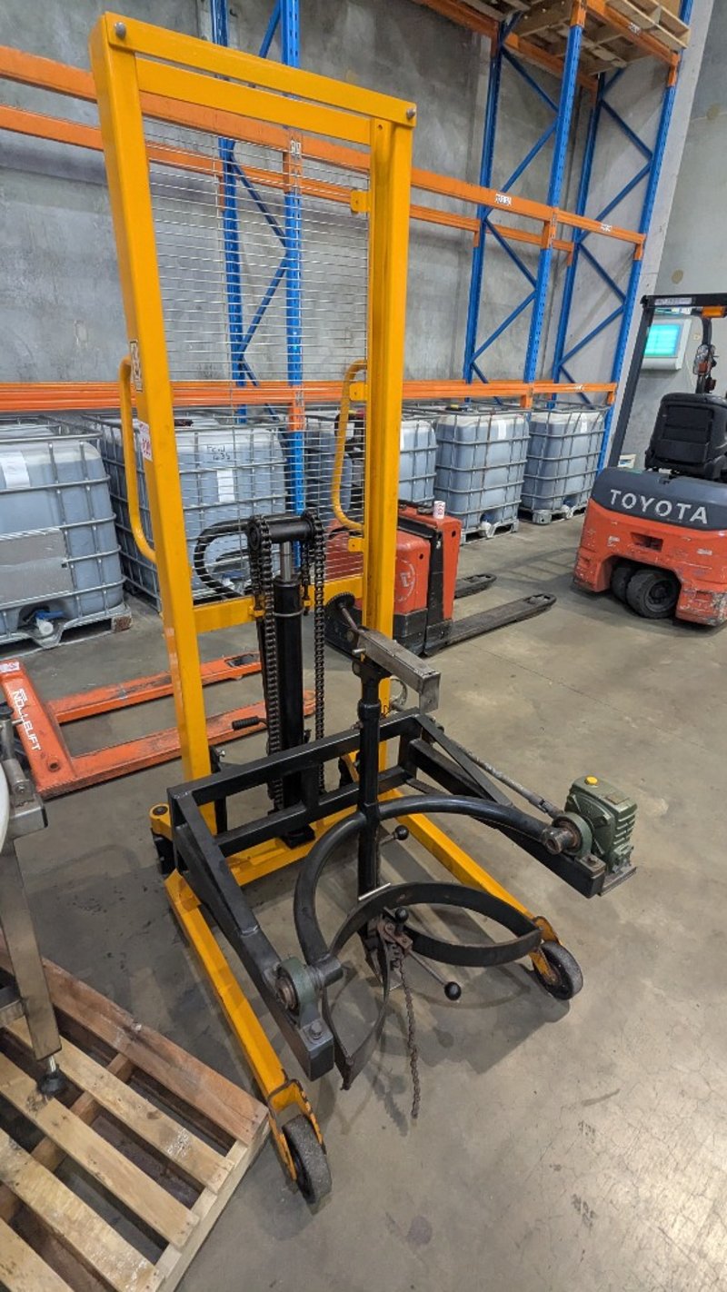 Manual Hydraulic Drum Lifter and Rotator, Castors, Foot Pedal, Adjustable Height