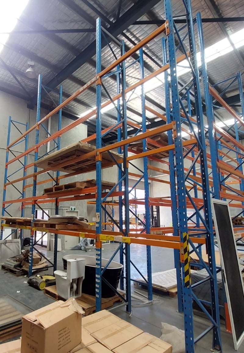 Heavy-duty industrial pallet racking system.Dims: 705Lx360HNote:Items on racking not included.
