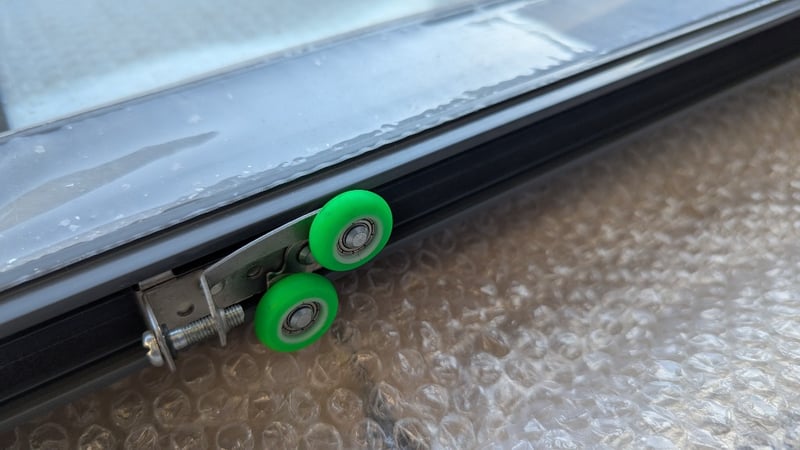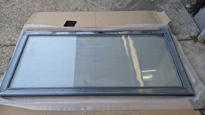Aluminium Stacker Door, Double Glazed Clear Glass, Colour Grey, Lockable Latch, Rollers Top and Bottom, Dimensions:205cm(H)×95cm(W)×4cm(D), Quantity 8Sold As Lot