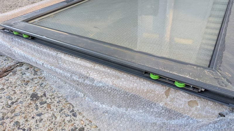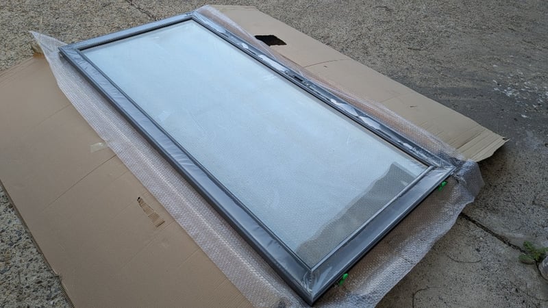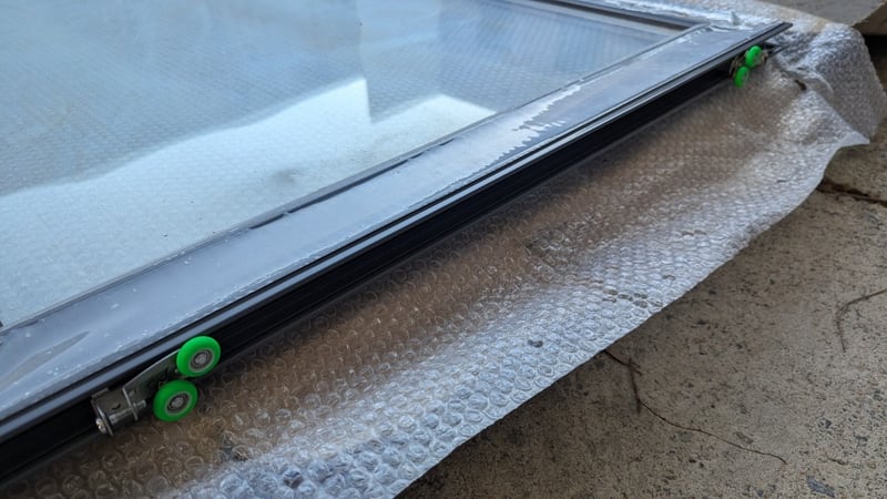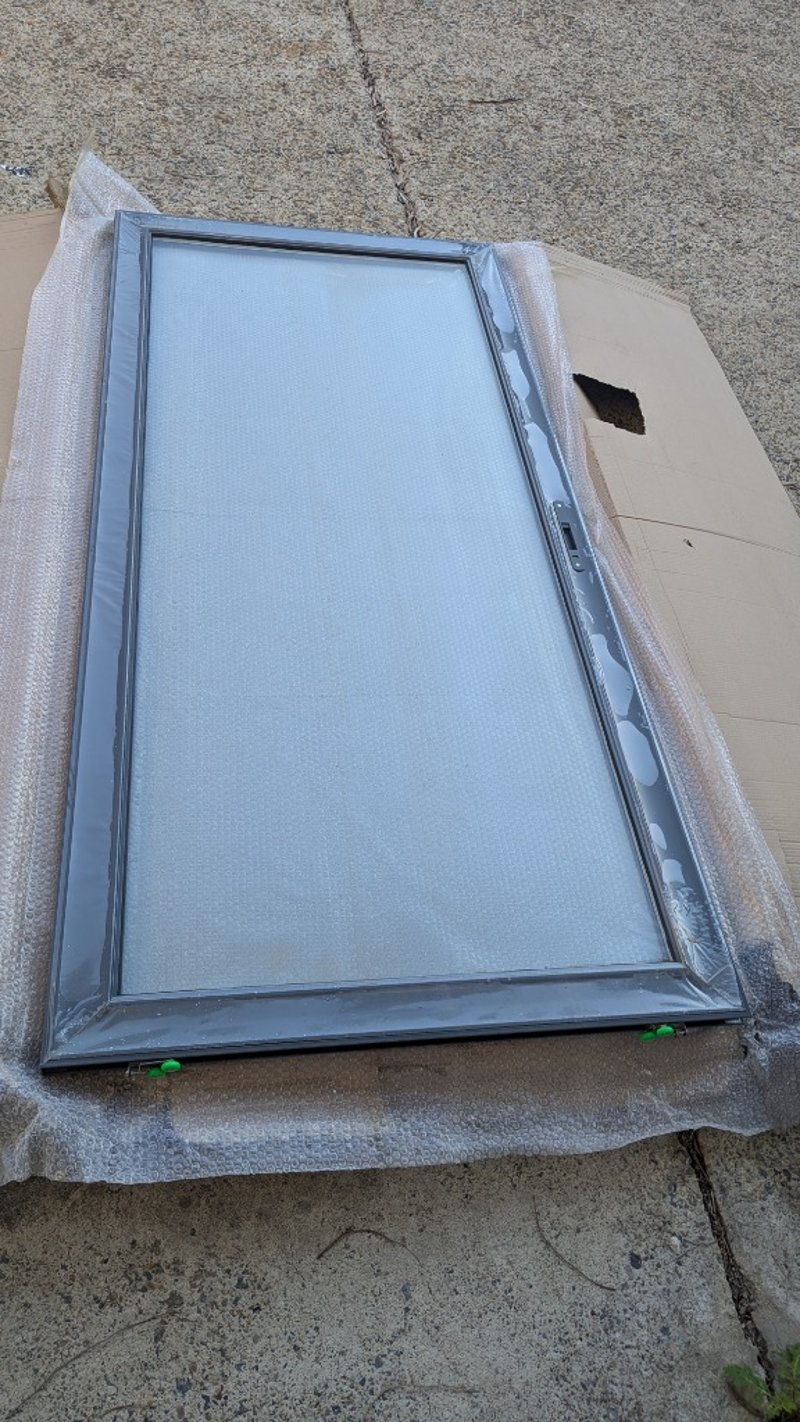 Aluminium Stacker Door, Double Glazed Clear Glass, Colour Grey, Lockable Latch, Rollers Top and Bottom, Dimensions:205cm(H)×95cm(W)×4cm(D)