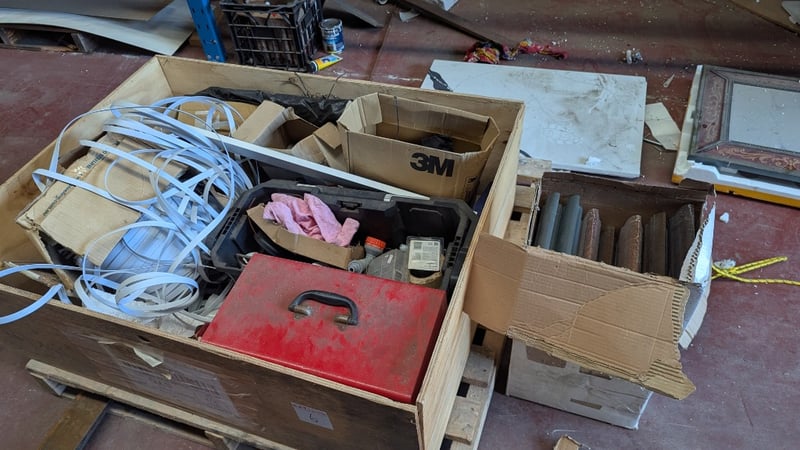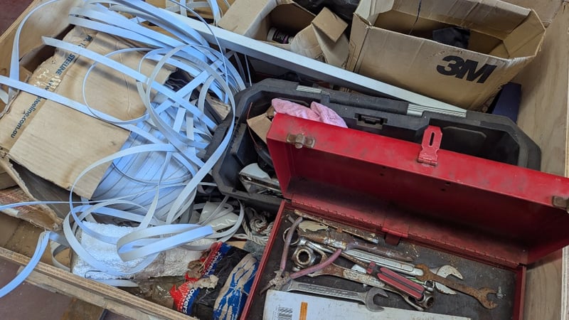 Assorted Bundle, Including Tools, Tool Box, Roll of Strapping, MirrorGap Filler and More, Quantity Per Lot
