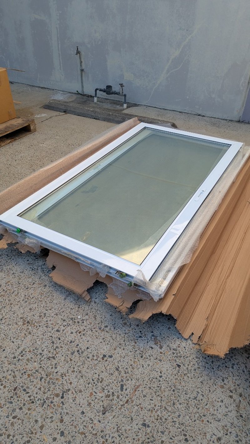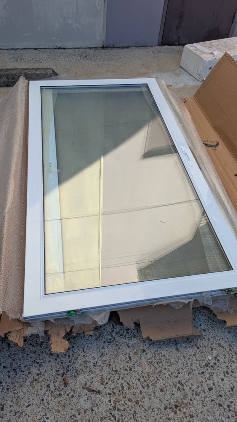 Aluminium Stacker Door, Double Glazed Clear Glass, Colour White, Lockable Latch, Rollers Top and Bottom, Dimensions:205cm(H)×95cm(W)×4cm(D), Quantity 2