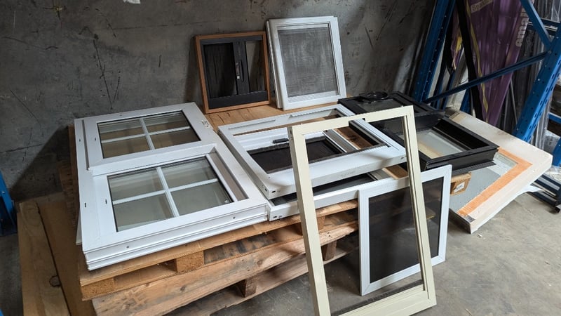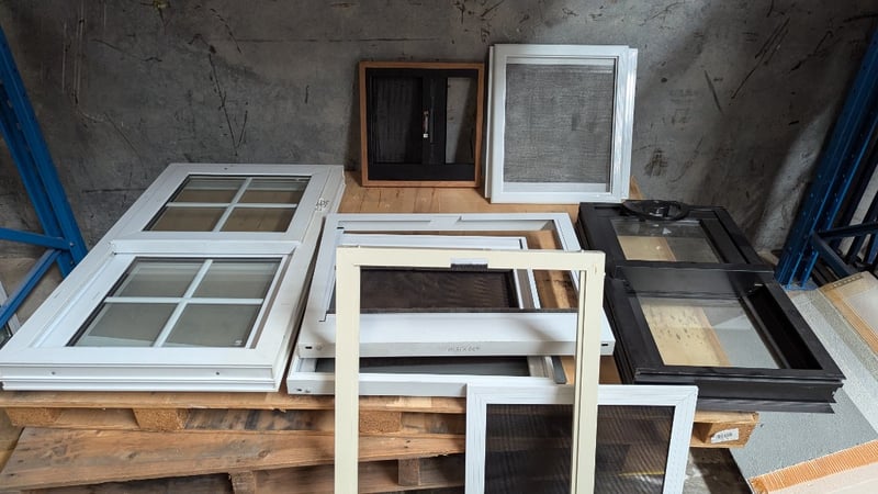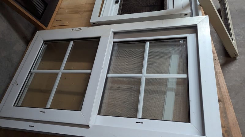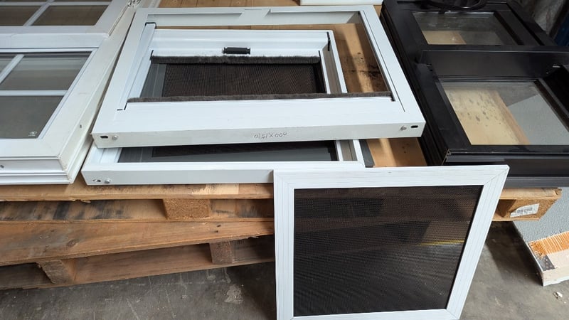 Assorted Windows and Fly Screens, Including 100cm×60cm Double Glazed Window, Various Fly Screens, Quantity 10Sold As Lot