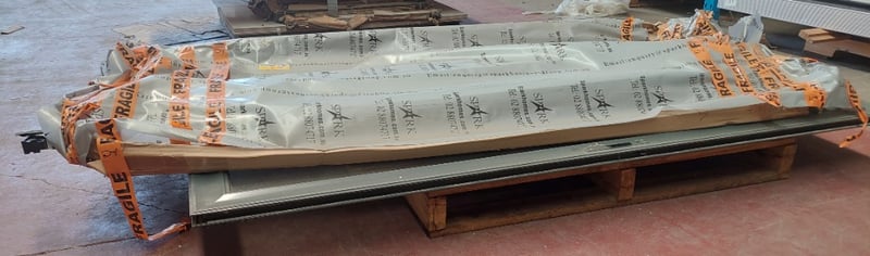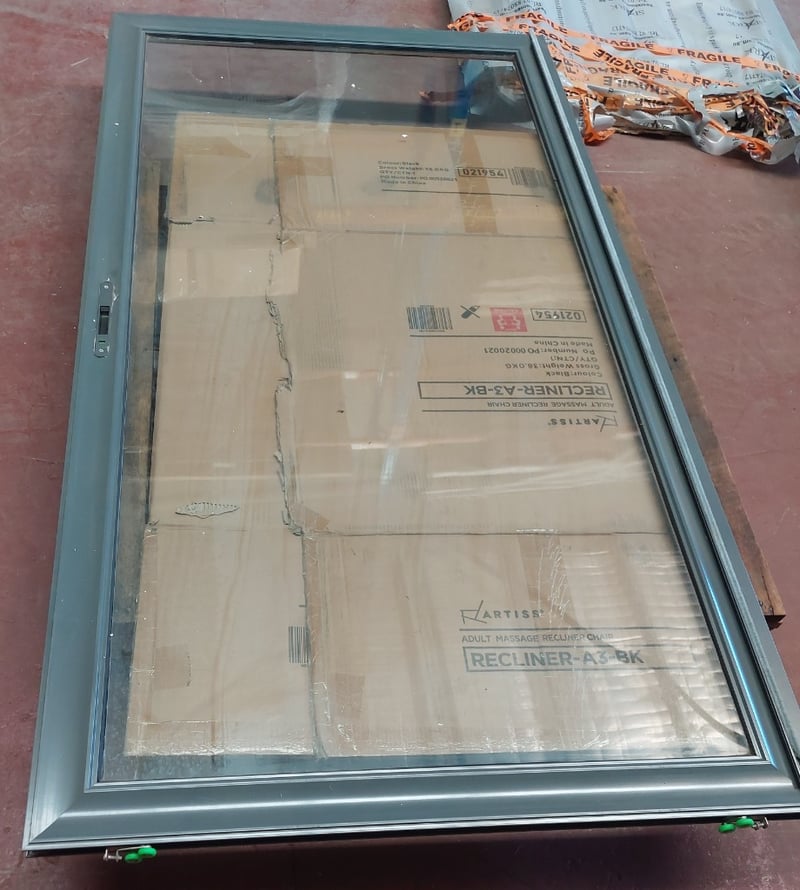 Stacker door Grey.Dims: 205cm H, 110cm W, 4cm DSold as lot.Notes: signs of wear.