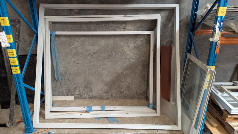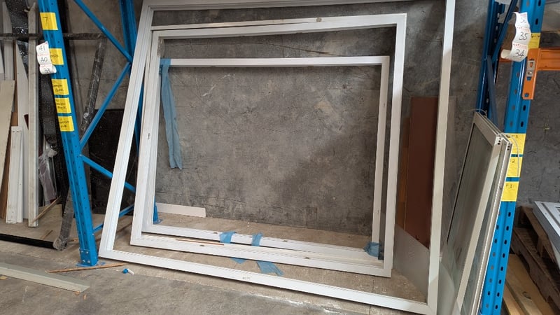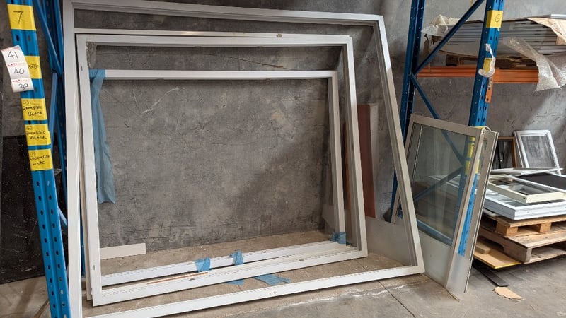Assorted Aluminium Door Frames, Colour White, Windows and More, Dimensions Ranging from 240cm×210cm to 200cm×150cm, Quantity 6Sold As Lot