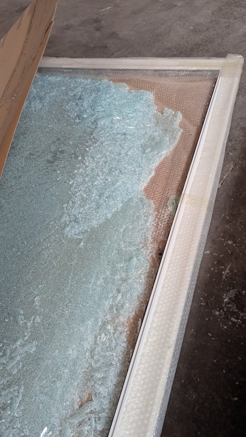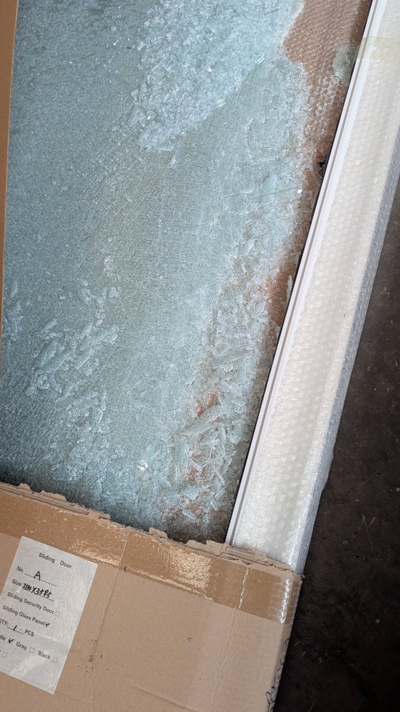 Aluminium Stacker Door Frames, Glass is Broken on Both Doors, Dimensions: 205cm(H)×124cm(W)×3cm(D), Quantity 2