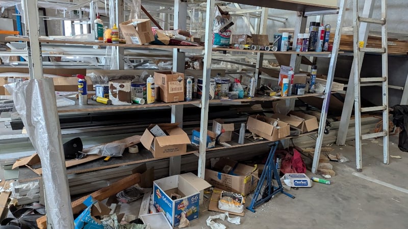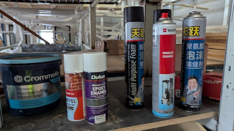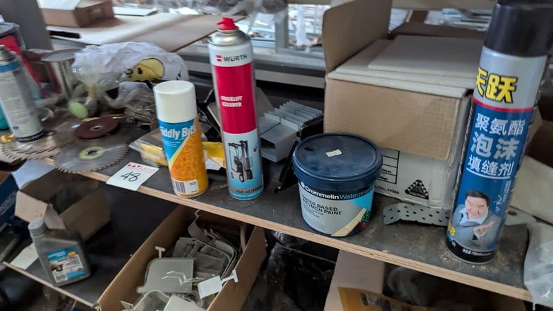 Contents of Shelving Unit, Including Gap Fillers, Saw Blades, Paint, Forklift Cleaner and More, Quantity Per Lot