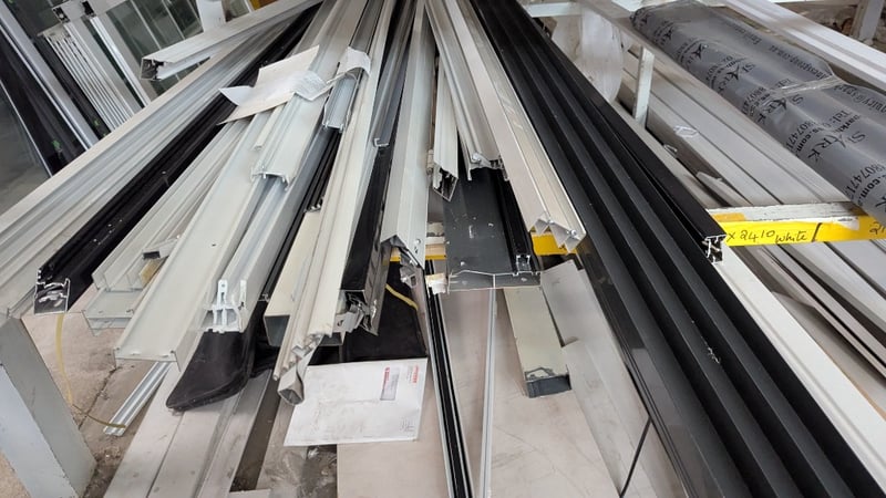 Assorted Bundle, Including Aluminium Sills and Sliding Door Frame, Various Timber Lengths and Offcuts, Quantity Per LotSold As Lot