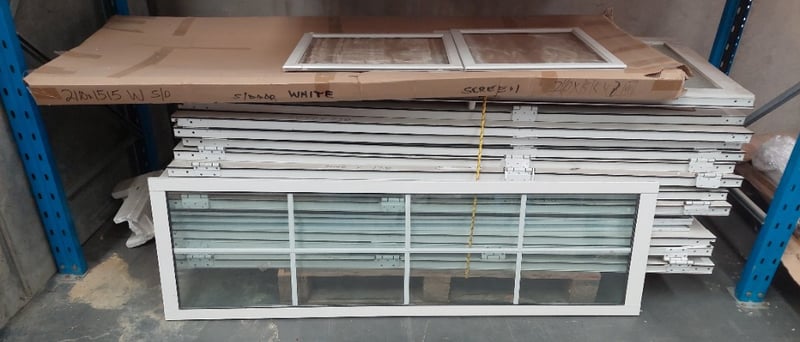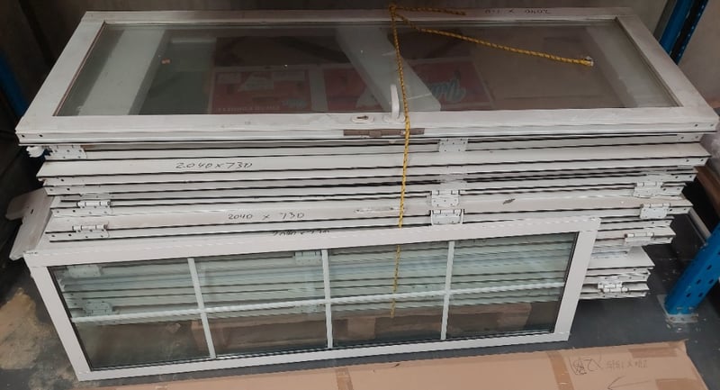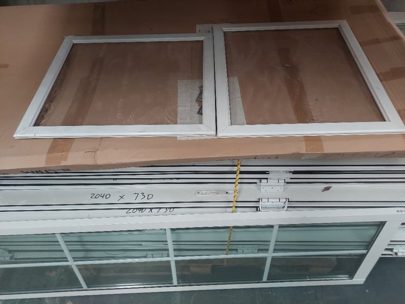 Aluminium frame security windows and doors.Dims:204cm H, 73cm W, 6cm D.Qty to lot.Sold as lot.