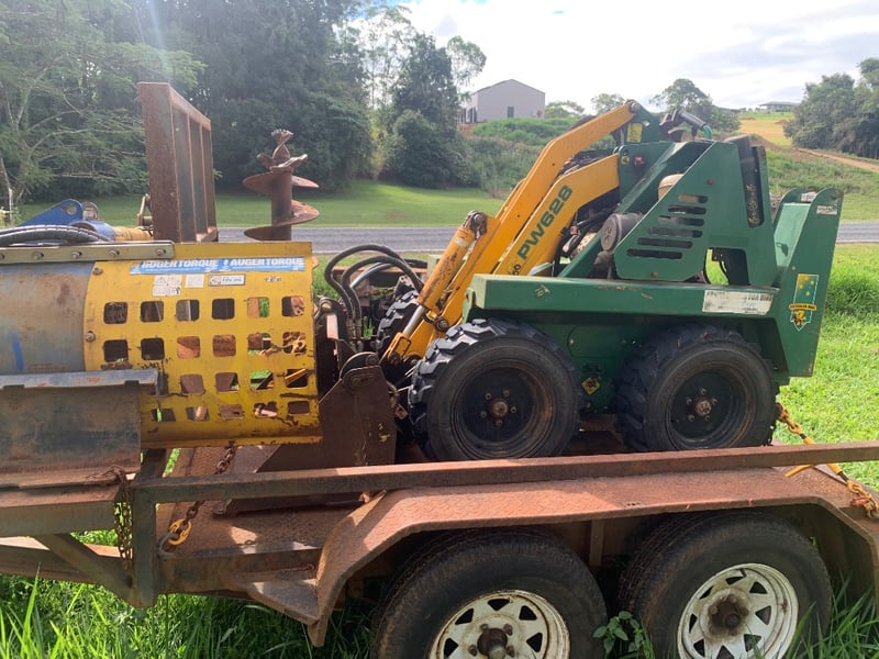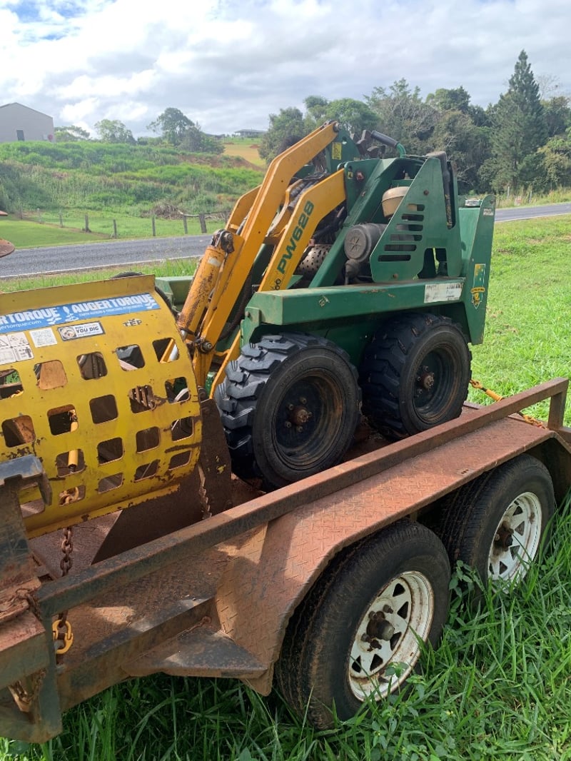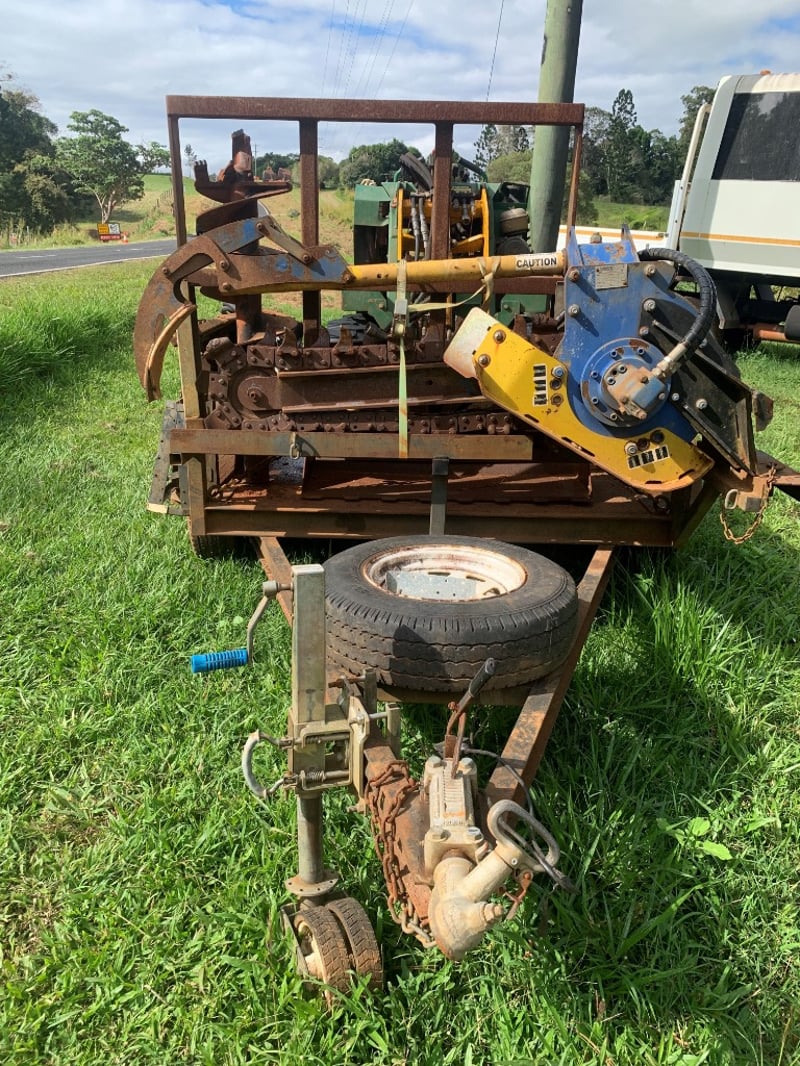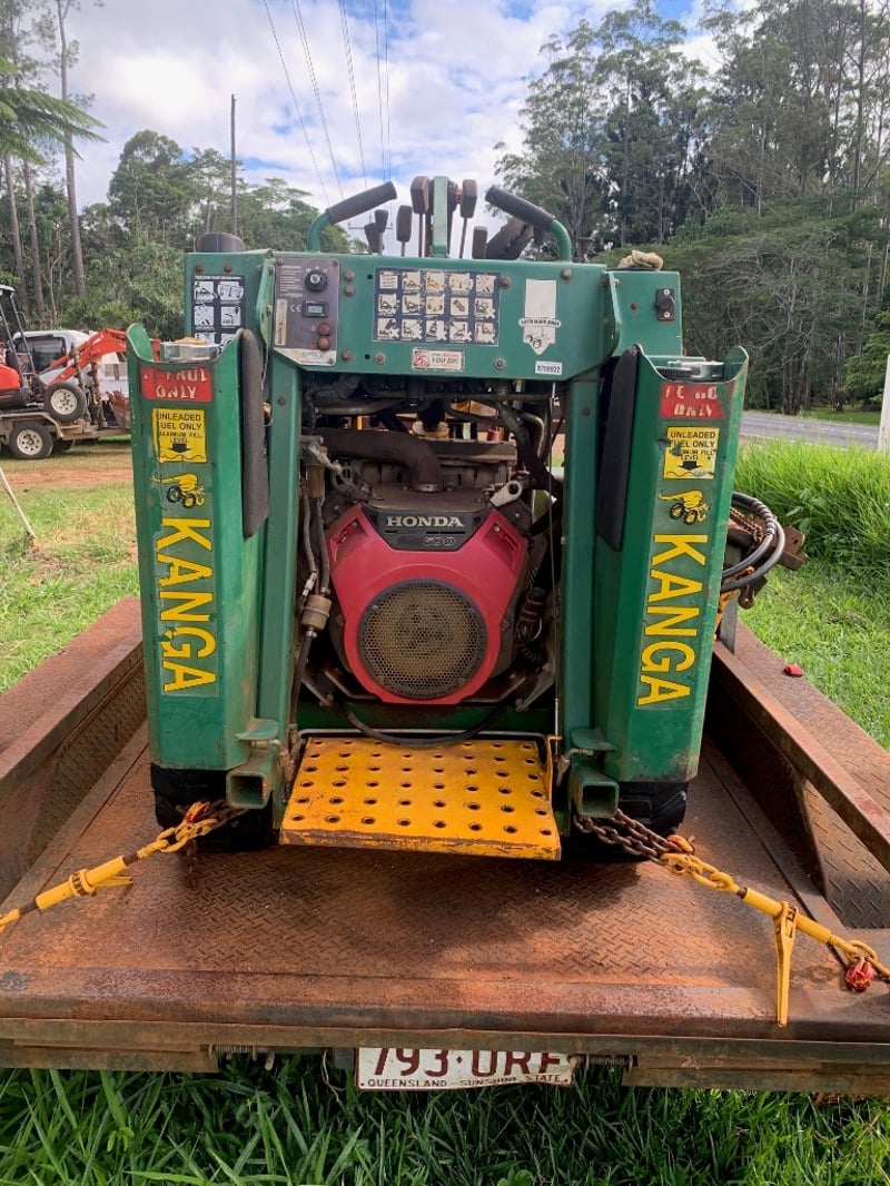 2015 Kanga Mini Skid Steer Loader with Trailer Skid Steer: Year: 2015 Make: Kanga Model: PW628 Serial No: KLA203816 Hours Indicating: 1,293.2 (When Photographed) Extras: - Comes with 4 in 1 bucket - Hydraulic Auger - Spreader Bar 2015 Bogie Axle Trencher Trailer VIN - 6LACARTRLFS000028 No Rego or RWC Inspection recommended Address: Onsite Malanda, QLD (Not Ll...