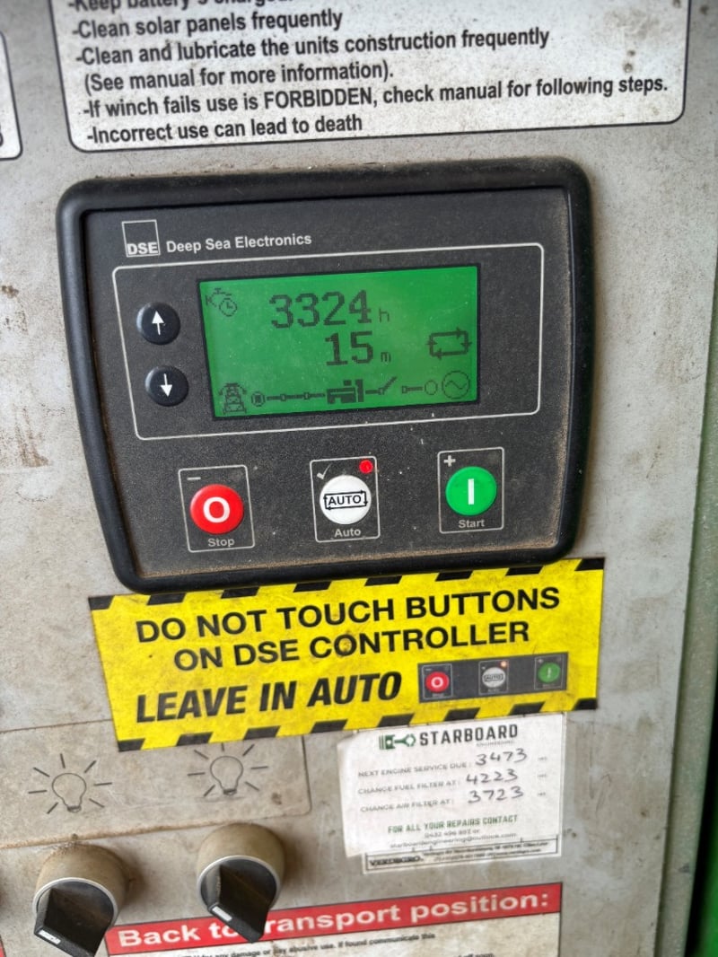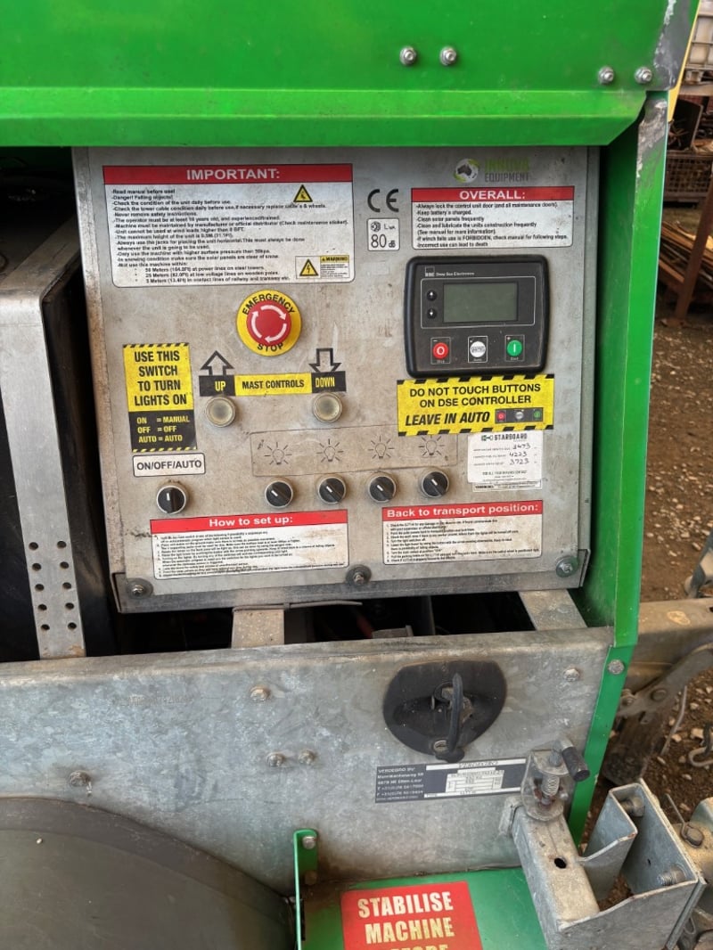 2017 Vedegro Solar Powered Lighting Tower Trailer Year: 2017 MakeL Vadegro Model - LLTT-H Type: Solar Powered Lighting Tower Trailer Engine: Kubota Engine Cylinders: 2 Fuel Type: Diesel 2x Solar Panels Mounted each side & top of Canopy & 1 Mast Mounted. - 6x Deep Cell Batteries - 4x LED Lights Mounted on Mast - Galvanised Lifting Frame - Delco 24V alternator No Rego...