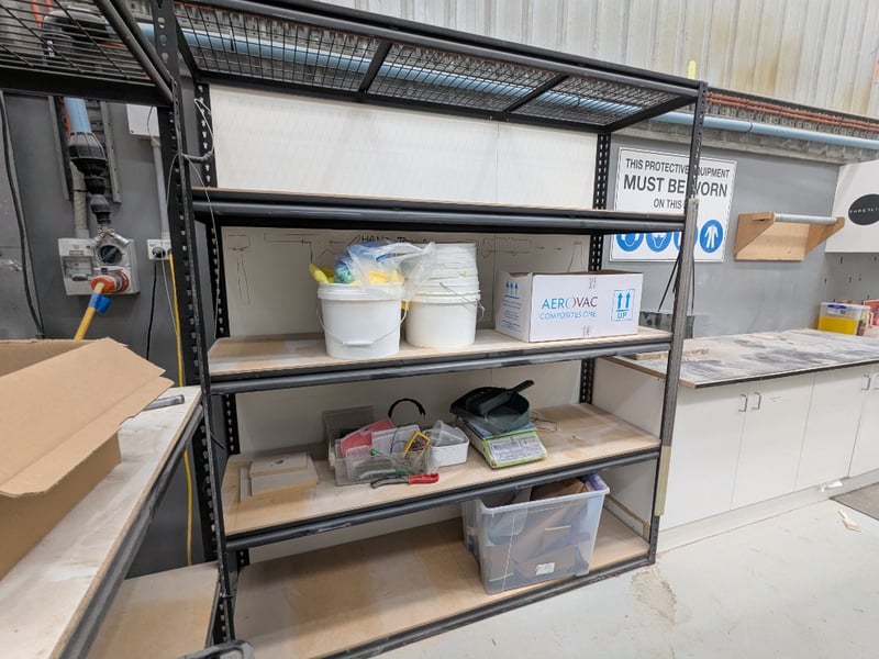 Metal Framed Shelf & moreDimensions: L 1820 x W 550 x H 2090Note: All contents included