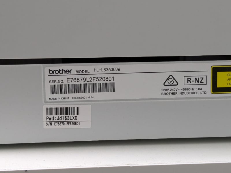 Brother HL-L836OCDW Printer Make: BrotherModel: HL-L836OCDWS/N: E76879L2F520801