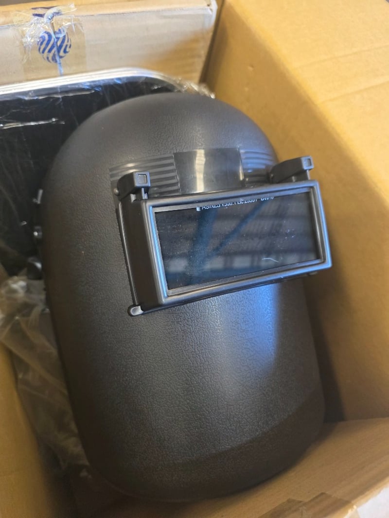 Carton of Welding Equipment including 4 x New Unisafe Welding Helmets and Unisafe Face Shield visors.