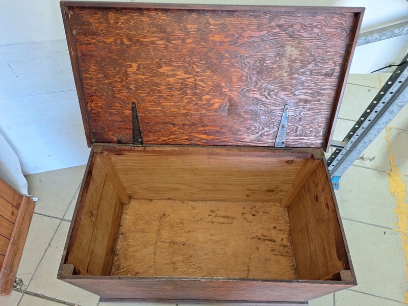 Storage Trunk, Timber, Stained Finish Dimensions H:53cm W:81cm D:44cm