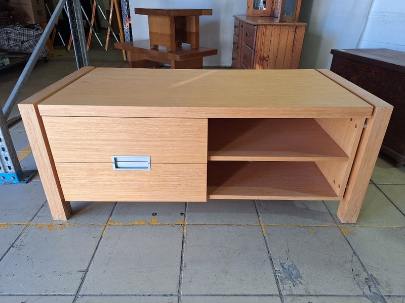 Entertainment Unit, Timber Style, Natural Finish Dimensions H:51cm W:125cm D:58cm
