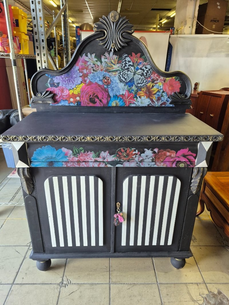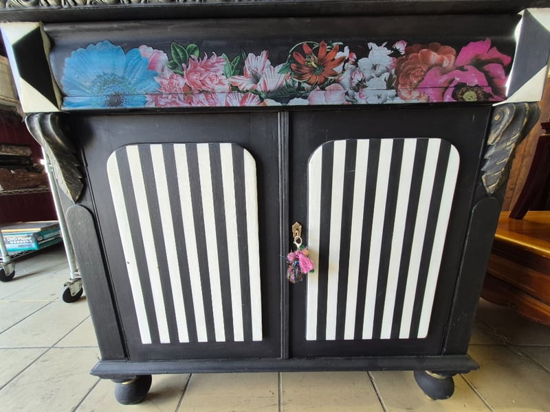 Painted cabinet, key includedDimensions: H: 162cm W: 107cm D: 50cm