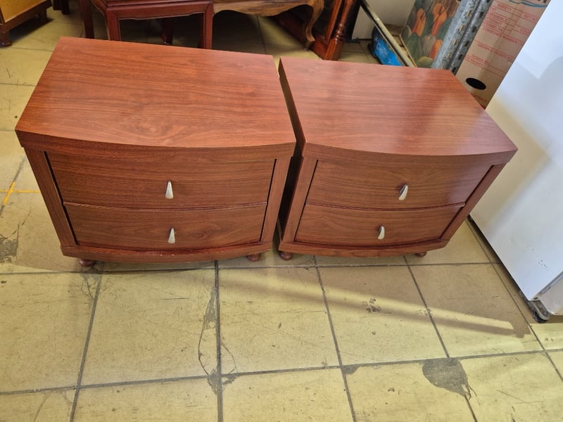 x2 bed side drawers, timberDimensions: H: 48cm W: 55cm D: 43cm SOLD AS LOT
