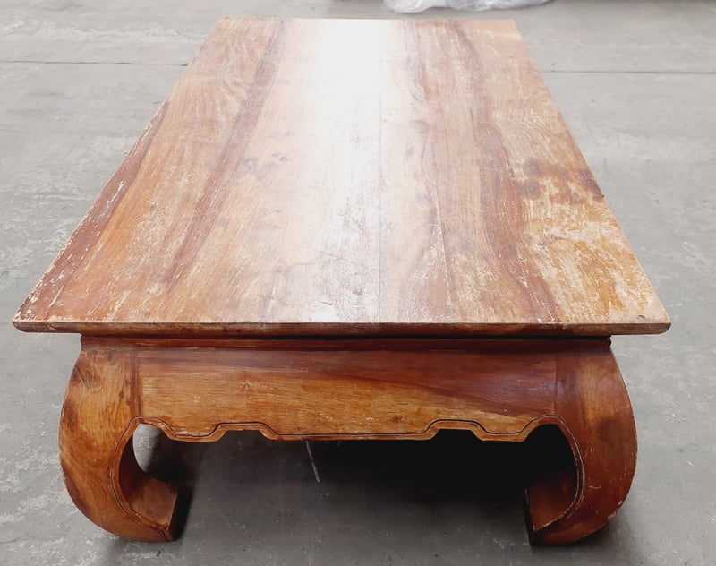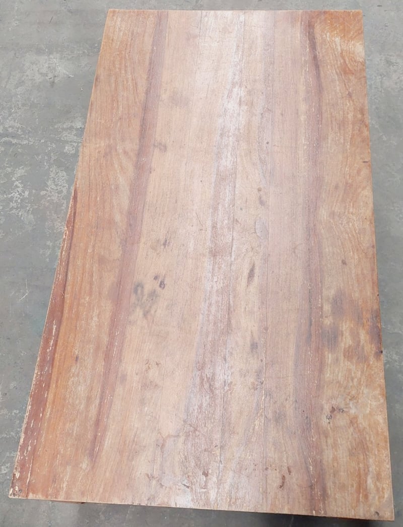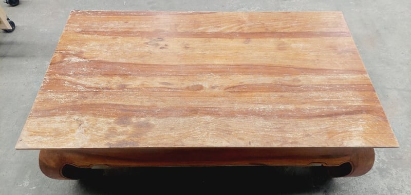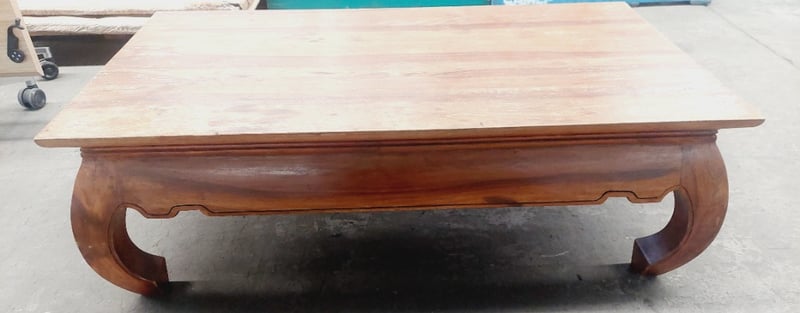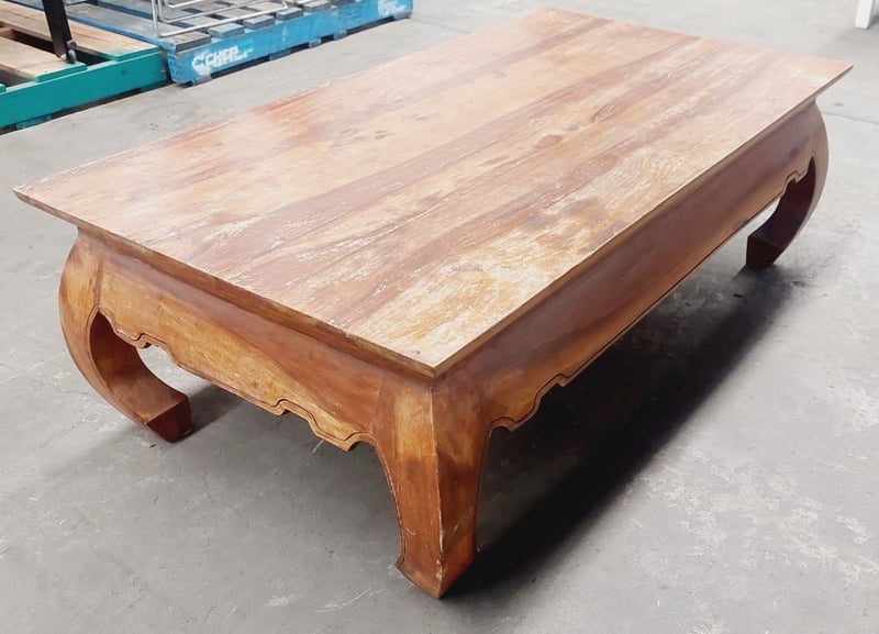 Wooden coffee table. Dimensions: 45cm H, 135cm L, 75cm W Note: signs of wear.