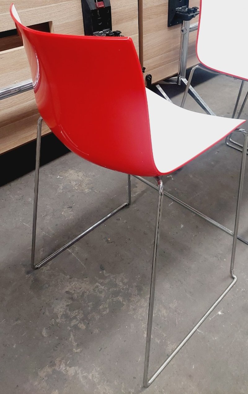 White and red bar stools.