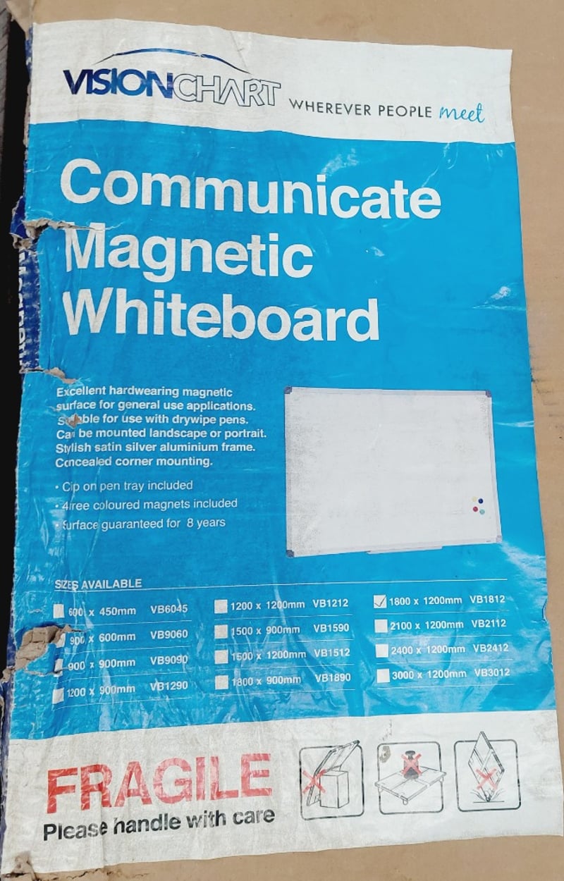 Visionchart Communicate Magnetic Whiteboard.Dimensions: 1800 x 1200mmNote: signs of wear.