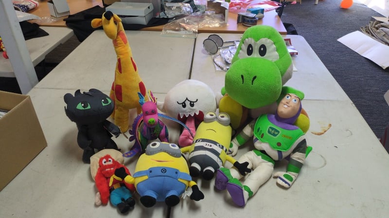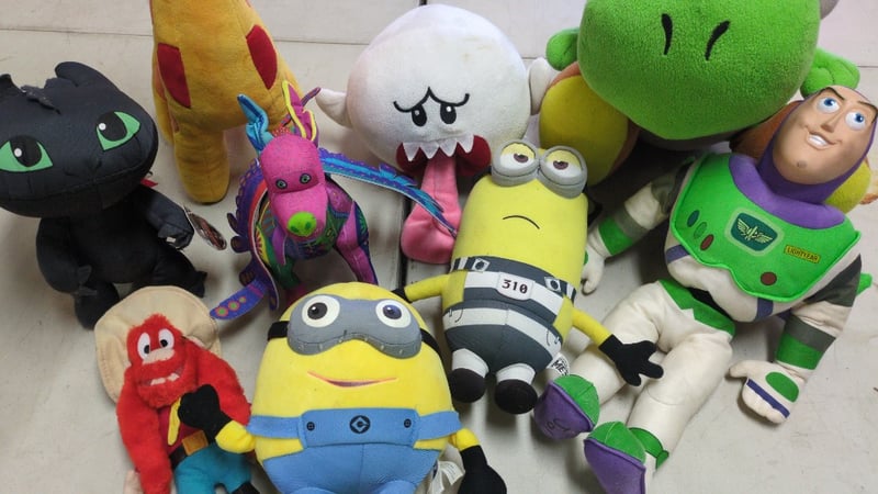 Assorted Stuffed Toys Including Yoshi, Toothless, And More