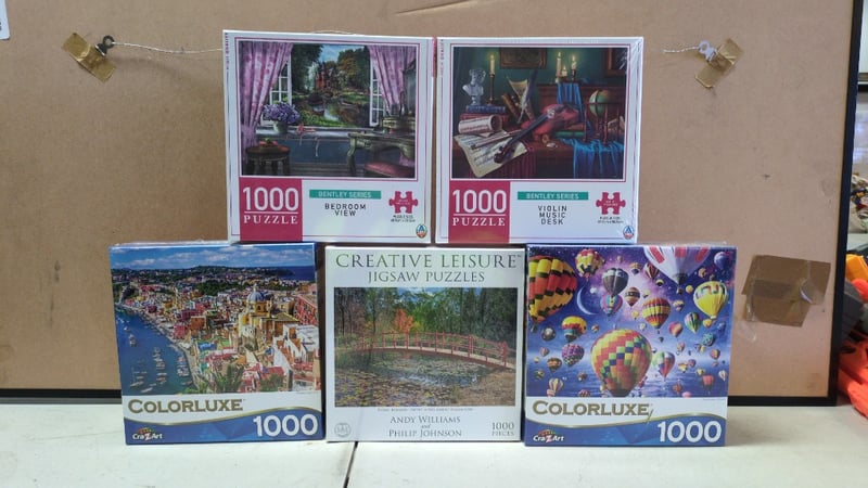 Assorted Unopened 1000 Piece Puzzles Including Colourluxe, Bentley Series, And More