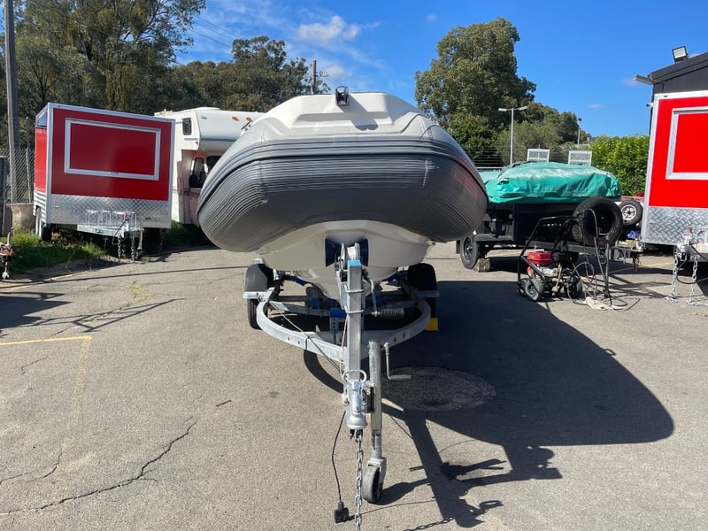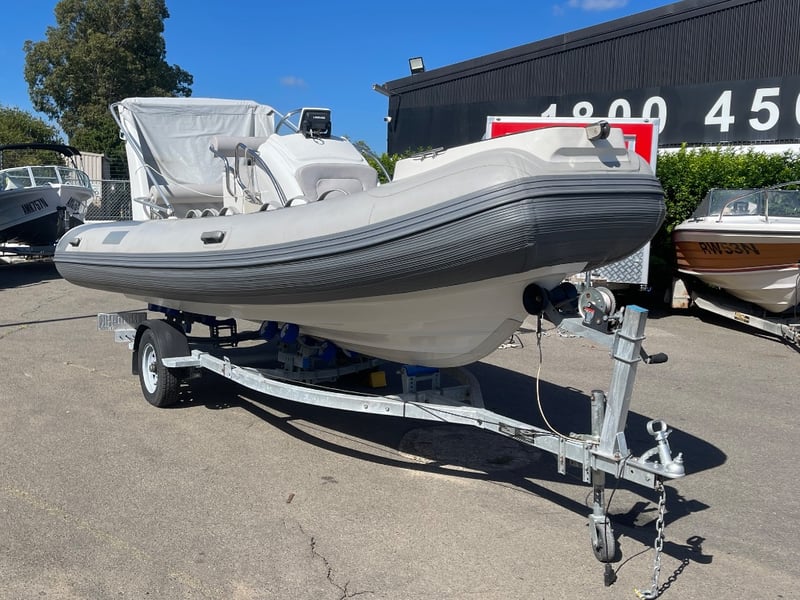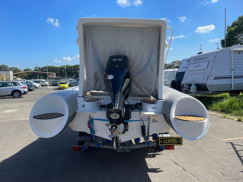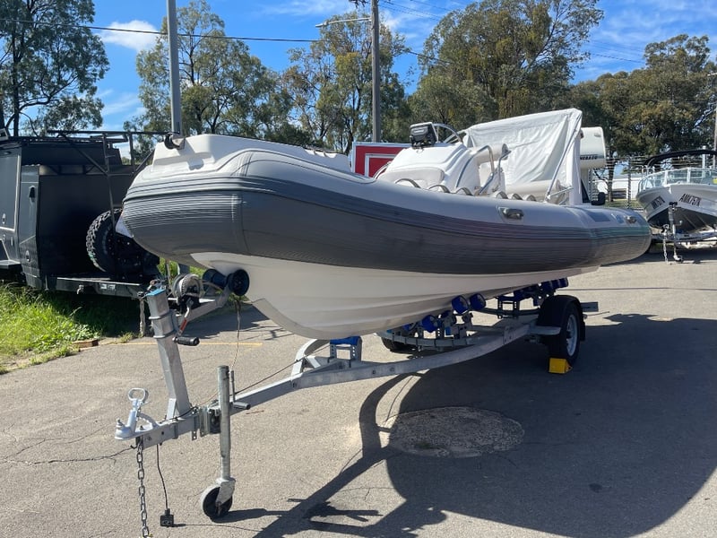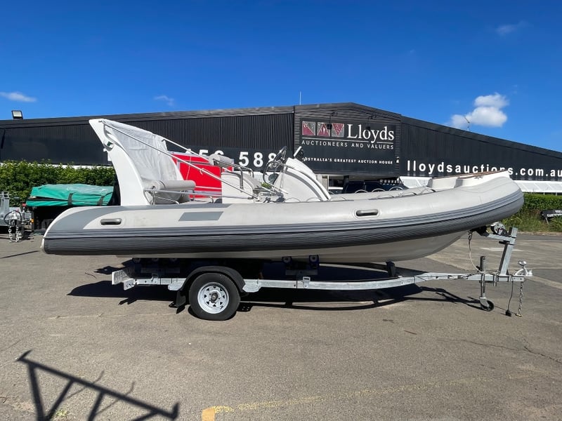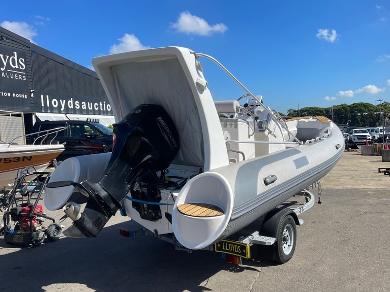 2023 QUINDO R520 Rib boat on Trailer Year: 2023 Make: QUINDO Model: RIB520 Body: Inflatable Hull Material: fibreglass Capacity: 980kg Colour: grey Engine: mercury 60hp Engine Model: 60ELHPT4S Engine no: 1C020222 Engine Hours Indicating: UNKNOWN Total length on trailer: APPROX 7.9m Trailer width: 2.4m Vessel length: 17.72ft Description: - Deep V Hull, - Hypalon tubes, - Electric tube pump, - Lowrance sonar/fish finder, - New battery, - Bilge pump, - Full cover Bimini, - Trailerable cover. 60HP mercury outboard hours- Unknown. 2023 Roller trailer, new lights and wiring. HIN: CNHHF52R01A323 ON A TRAILER: Year: 2023 Make: Concessional trailer Model: Boat trailers Body: trailer Colour: silver Configuration: single axle Suspension: leaf ATM: 740KG Tare: 220KG Total length: APPROX 7m Description: Chassis No.: 6ZZP0000000007072 Key # MMR10 Marple Lloyds Stock #580735+1 #MMR