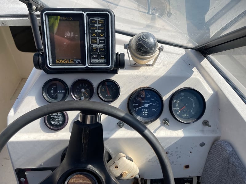 Description: wear & tear throughout boat. marks, damages visible. engine hours unsighted due to bubbles in odometer cover. inspection advised