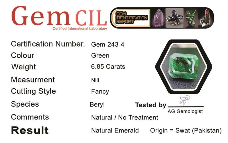 Weight = 6.85 Carats