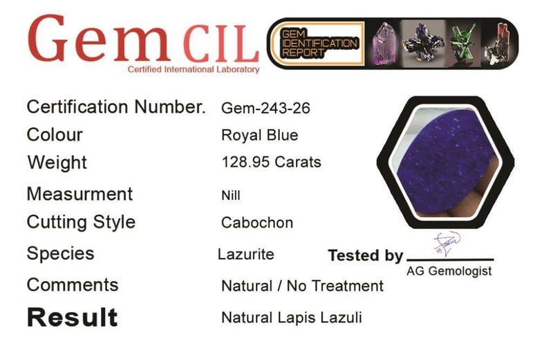 Weight = 128.95 Carats